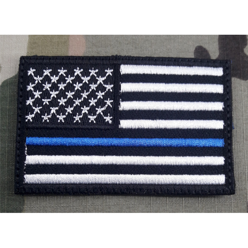 PATCH USA FLAG LINE BLUE POLICE 80X50mm