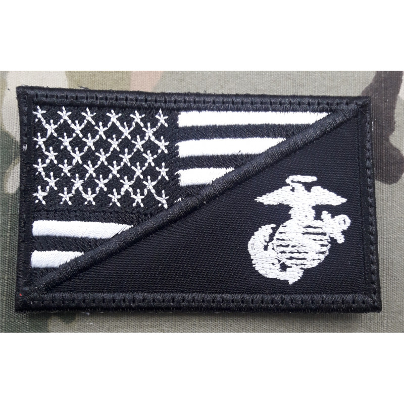 PATCH FLAG USA -MARINES USMC BLACK VELCRO 80X50mm